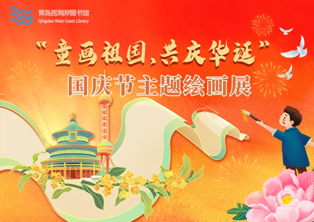 为庆祝中华人民共和国成立75周年,10月1日-10月28日,青岛西海岸图书馆携手柒叁画廊共同举办“童画祖国,共庆华诞”国庆主题绘画展览。