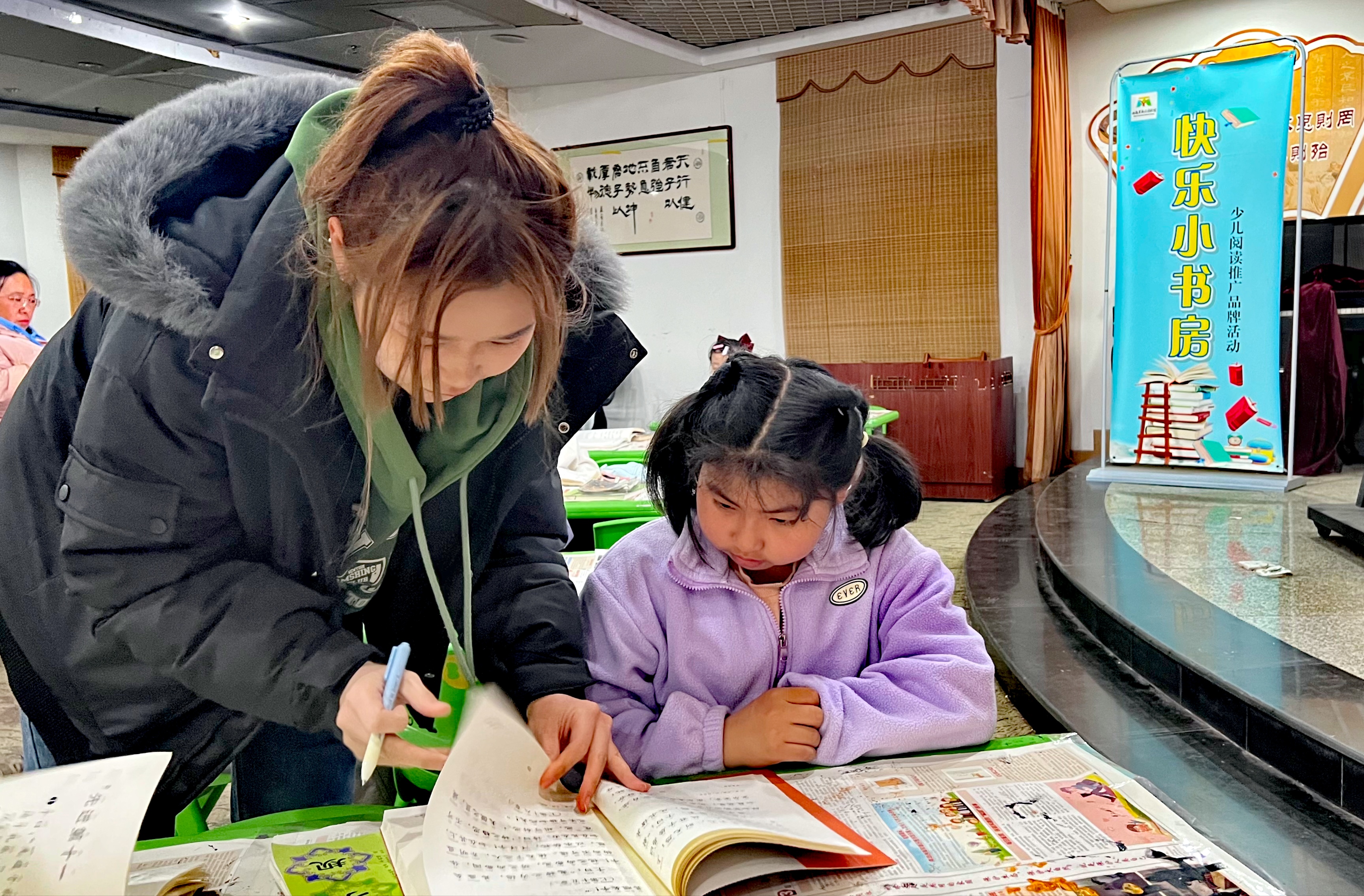 3月1日,青岛西海岸图书馆珠江路馆举办了“快乐小书房”国学讲堂。本期的“快乐小书房”国学讲堂课,青岛西海岸新区政博书院的志愿者一文老师和小朋友一起学习传统文化《道德经》。小朋友和家长在一文老师的带领下一起诵读《道德经》,感悟国学经典,共同快乐成长。
