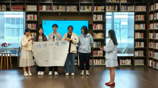 在系列互动环节中,30位准大学生分成五组。各组成员积极讨论,集思广益,快速确定了各自的团队名称、口号和队歌,并在现场进行了精彩展示,充分展现了青春风采。