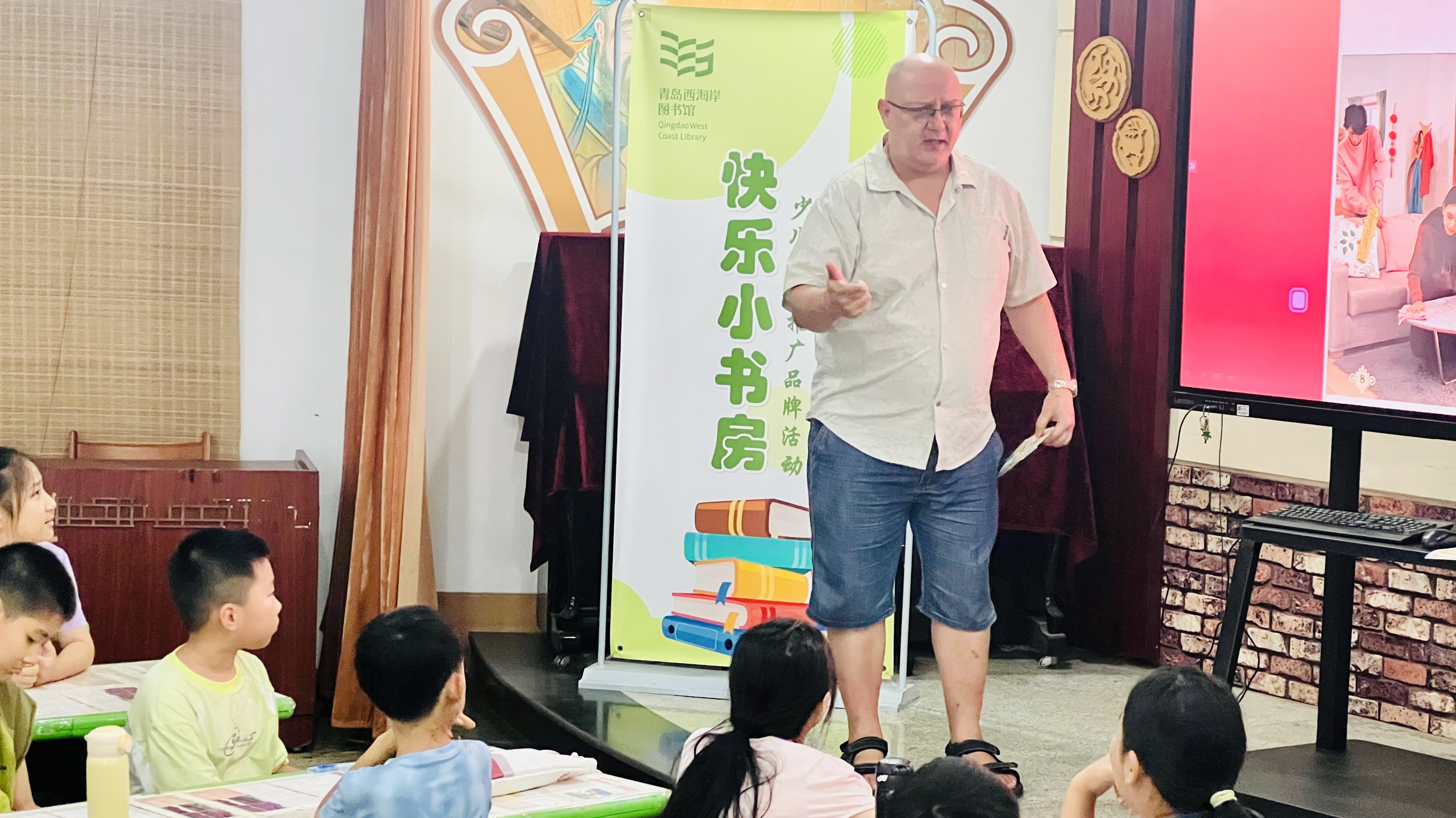7月11日,青岛西海岸图书馆珠江路馆联合大志教育共同推出了第二期“快乐小书房”——“用英语讲好中国故事”英文绘本故事。
