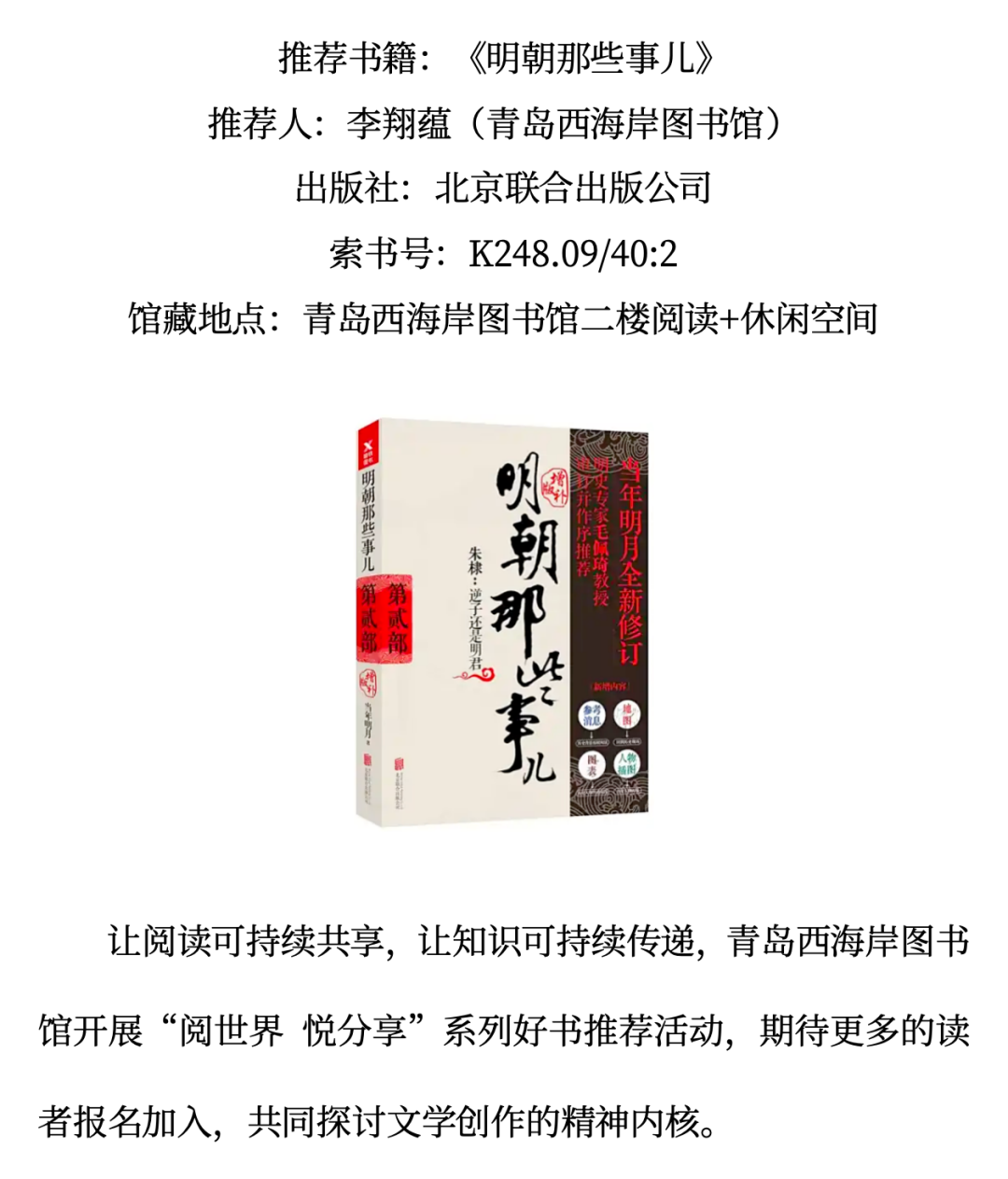 青西荐书| 《明朝那些事儿》——“阅世界 悦分享”系列好书推荐(四十七)