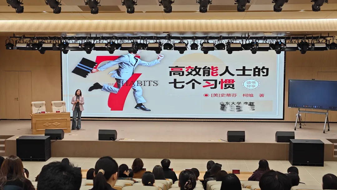 本次活动特邀山东大学政治学与公共管理学院教授、山东大学社会治理研究基地研究所所长李辉教授,以“高效能人士的七个习惯”为题,带来了一场生动有趣、内涵丰富的报告。