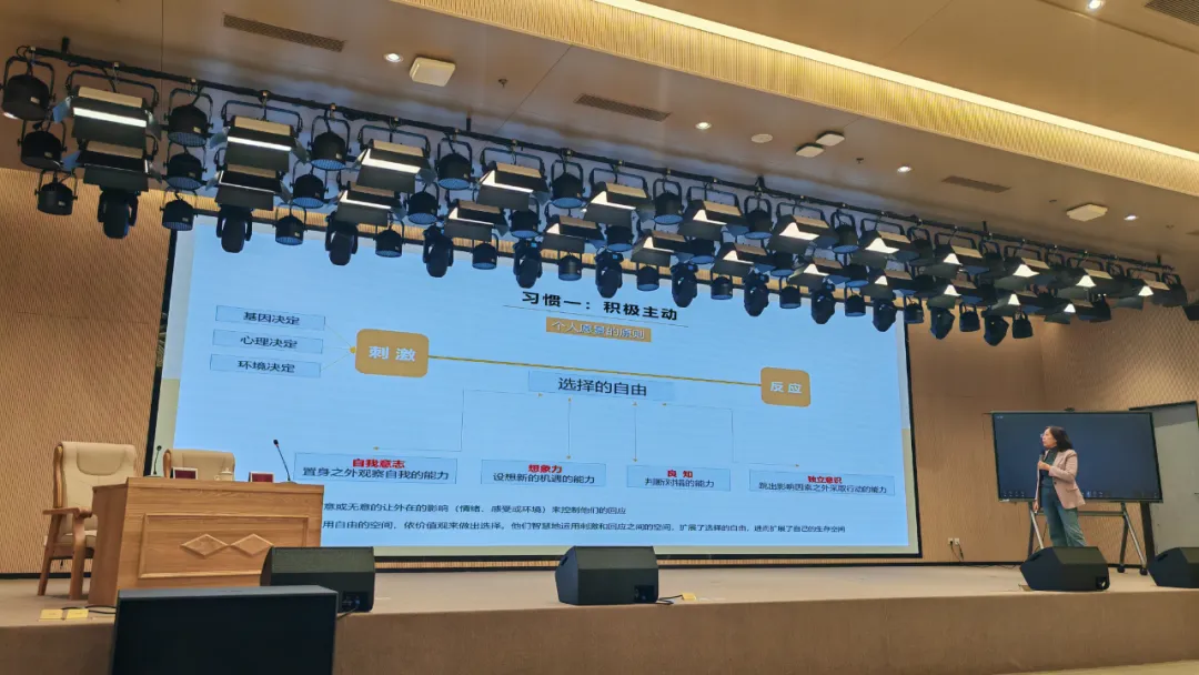 活动中,李辉教授为大家系统解析了七个习惯:在个人成功领域,“积极主动”教导依价值观扩大影响圈;“以始为终”强调规划人生蓝本;“要事第一”则借助时间矩阵提升效能。