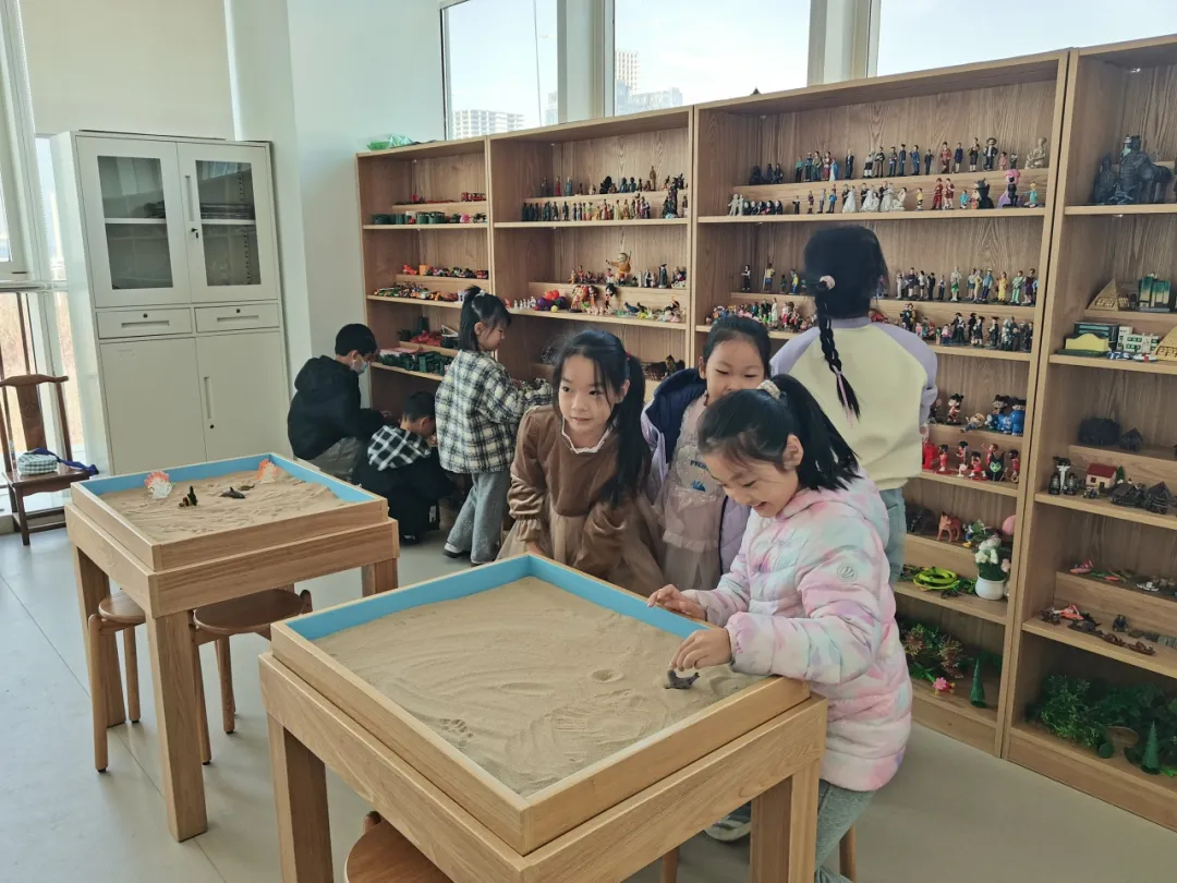 不同于传统活动形式,沙盘为少年儿童提供了无压力的表达空间:无需刻意言说,孩子们通过沙具的摆放、场景的构建,自然流露内心想法与情感表达,在自主创作中实现情绪的舒缓与释放。
