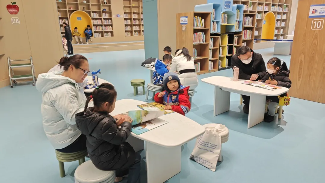 带着科技体验的新奇感,大家随后走进少儿阅读空间,在色彩明快的书架间,一本本童趣盎然的绘本,让孩子们迅速沉浸在阅读的快乐中。