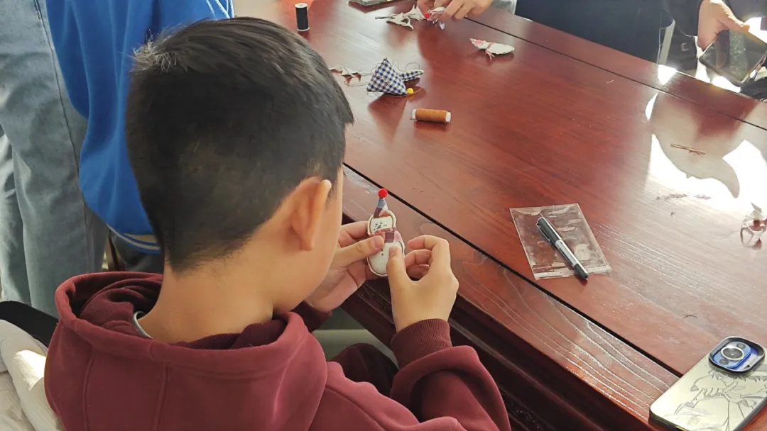 从缝合身体主体,到为其戴上小巧的帽子,再到系上迷你围巾,每一个步骤都由家长和孩子商量后配合完成。