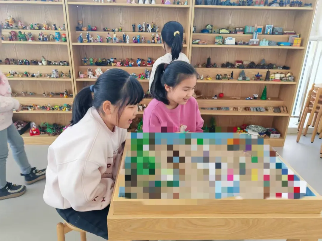 沙盘创作完成后,分享环节顺利开展。每个小朋友依次分享自己的创作想法与对沙盘场景的理解,熠柔老师耐心倾听并引导孩子们清晰表达。这一环节不仅让孩子们在表达中锻炼了语言组织能力,也让同伴们更深入地了解彼此创意。