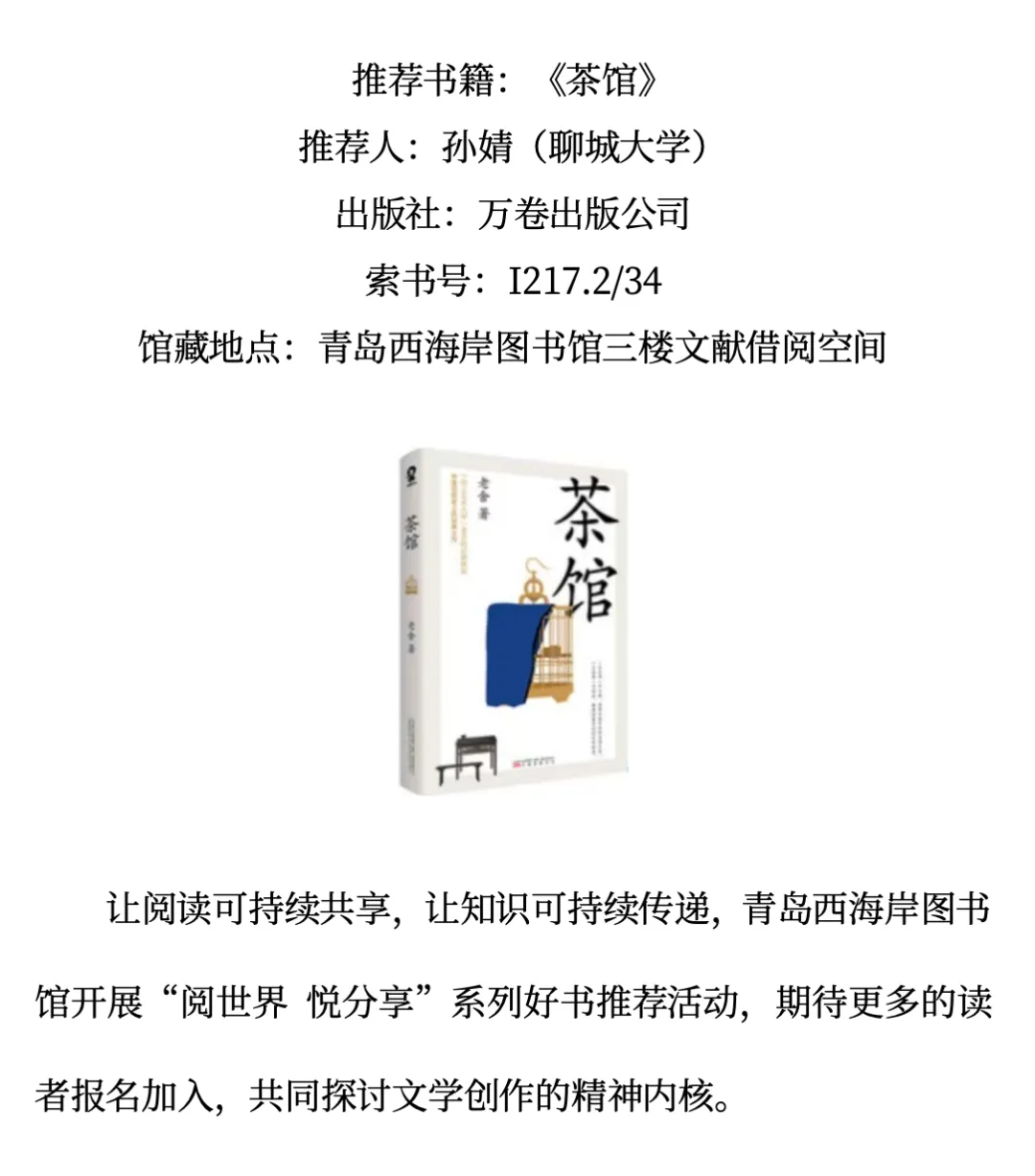 青西荐书|《茶馆》——“阅世界 悦分享”系列好书推荐(七十八)