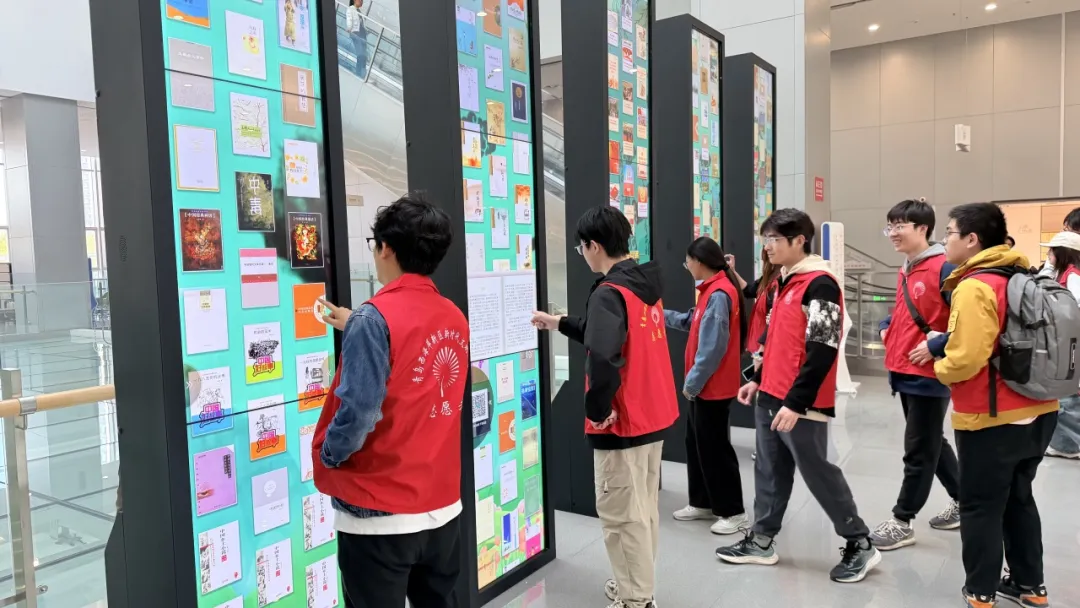 中庭区域的瀑布流电子屏投射出海量电子书资源,不断流动的书目列表如数字瀑布般跃动。指尖轻轻滑动,就能随意切换书籍,轻松开启在线阅读,遇到喜欢的内容,扫码即可将各类书籍“装进口袋”。