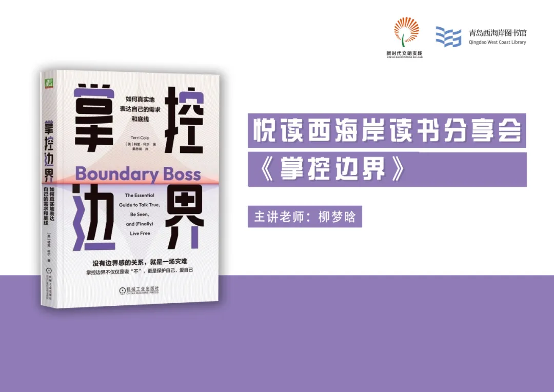 12月17日,青岛西海岸图书馆“悦读西海岸”读书分享会将邀请IFA国际芳疗师、高级颂钵疗愈师柳梦晗,带领大家共读《掌控边界》,开启一场心灵边界勘探与重建之旅。报名本次活动,找回属于您的“情绪领地”吧!