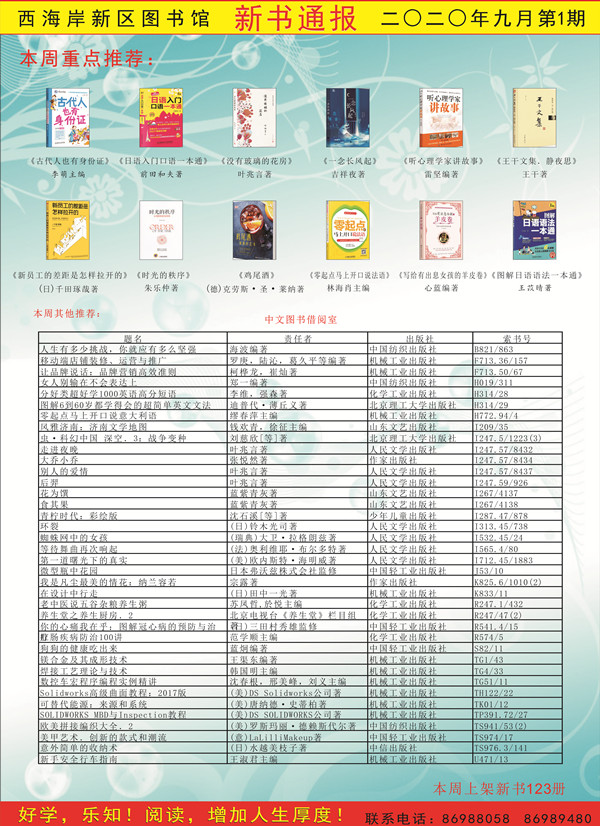 中文图书借阅室本期新书明细如下: