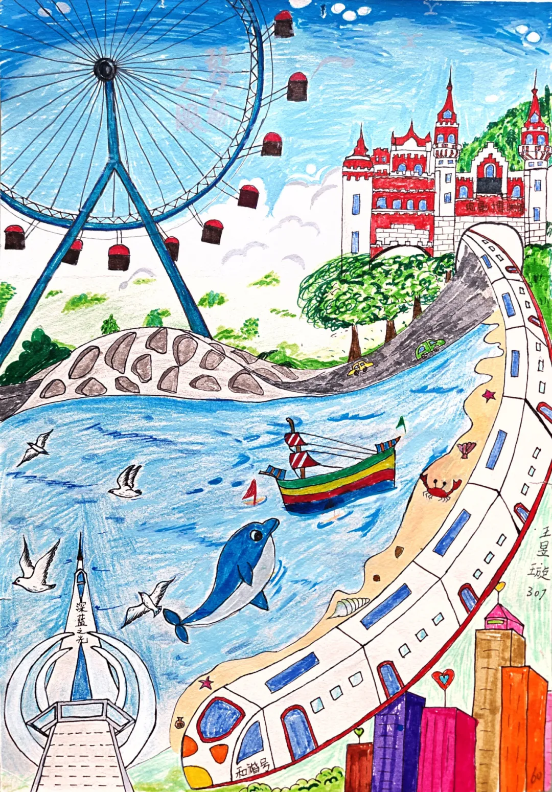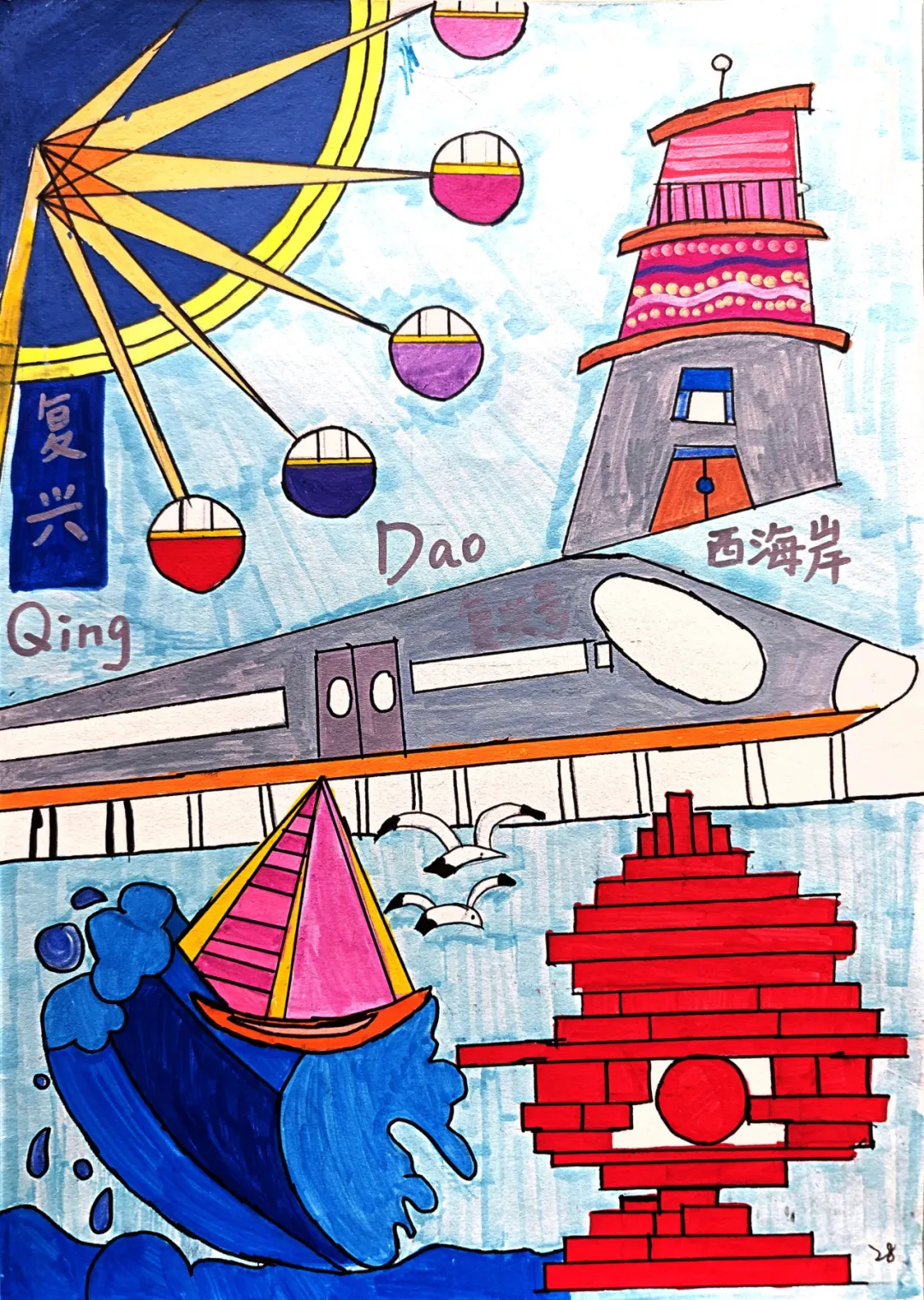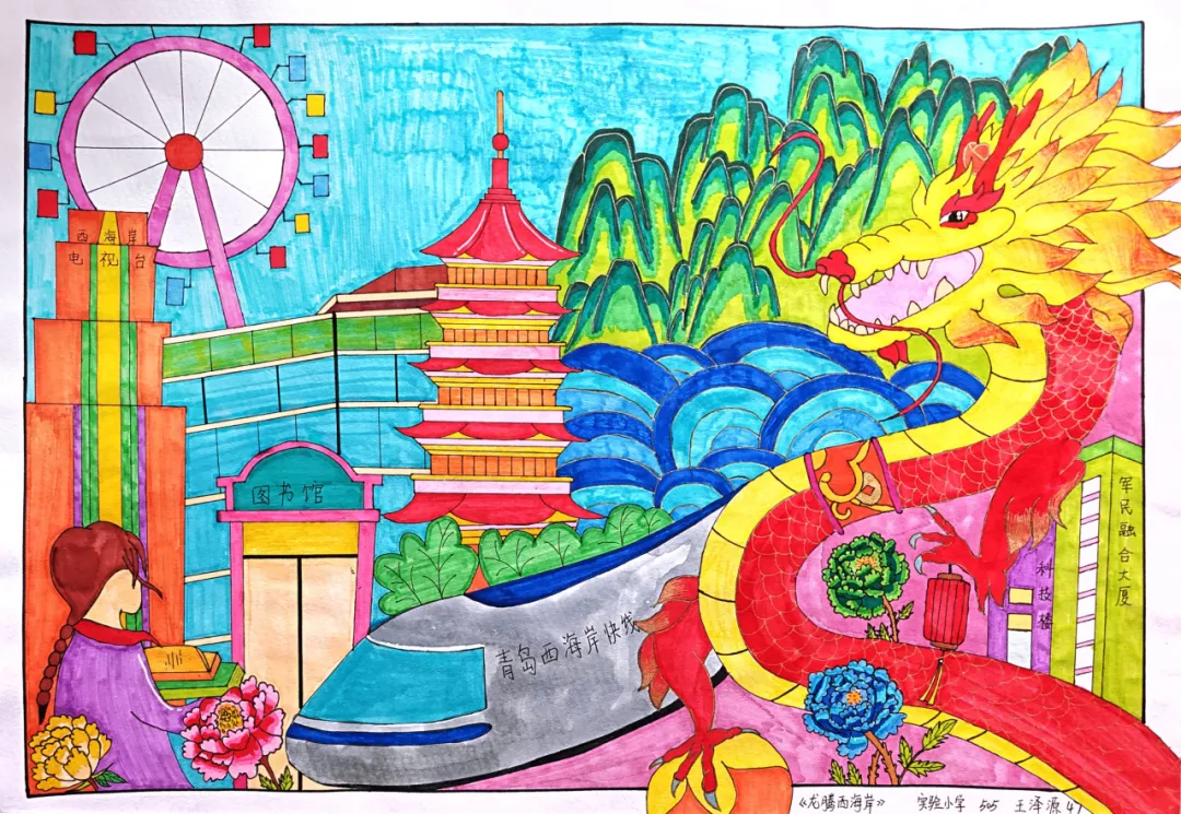 前期,新区团委、区少工委主办,青岛西海岸图书馆协办的“童手绘新区 红心向未来”绘画大赛,得到了新区广大少先队员的热烈响应,孩子们拿起画笔,描绘出心目中的新区变迁、城市发展、幸福生活、自然风光、地标建筑、未来梦想....“团聚西海岸”公众号对部分优秀获奖作品进行线上展播,让我们来欣赏各位小画家的精彩画作吧~