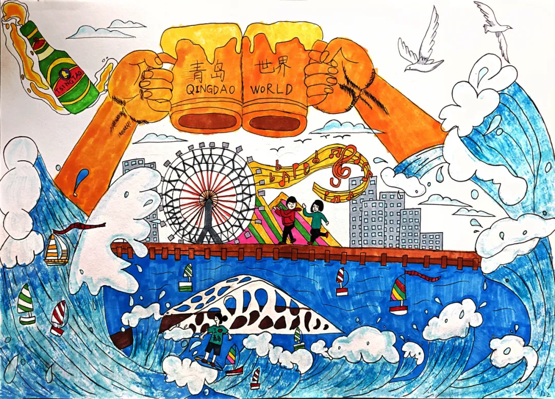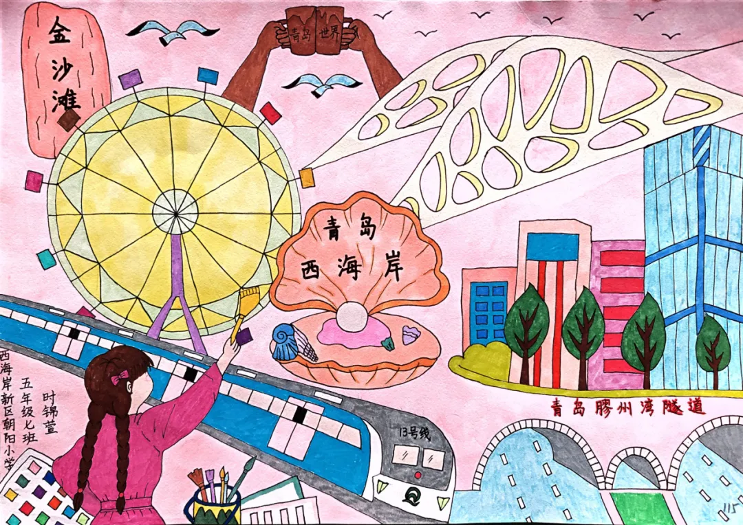 前期,新区团委、区少工委主办,青岛西海岸图书馆协办的“童手绘新区 红心向未来”绘画大赛,得到了新区广大少先队员的热烈响应,孩子们拿起画笔,描绘出心目中的新区变迁、城市发展、幸福生活、自然风光、地标建筑、未来梦想....“团聚西海岸”公众号对部分优秀获奖作品进行线上展播,让我们来欣赏各位小画家的精彩画作吧~