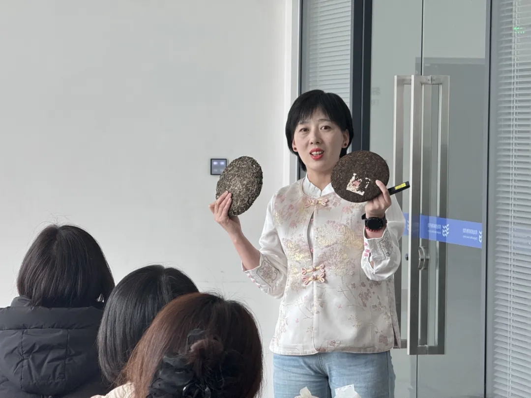 此外,老师还分享了普洱茶的选购与贮藏技巧,帮助参与者们学会如何挑选优质的普洱茶,如何保存才能让这份自然的馈赠长久地保持其最佳风味。结合普洱茶的保健功能,老师讲述了它对人体健康的益处,如调节血脂、促进消化等,鼓励大家将饮茶作为一种健康的生活方式融入日常。