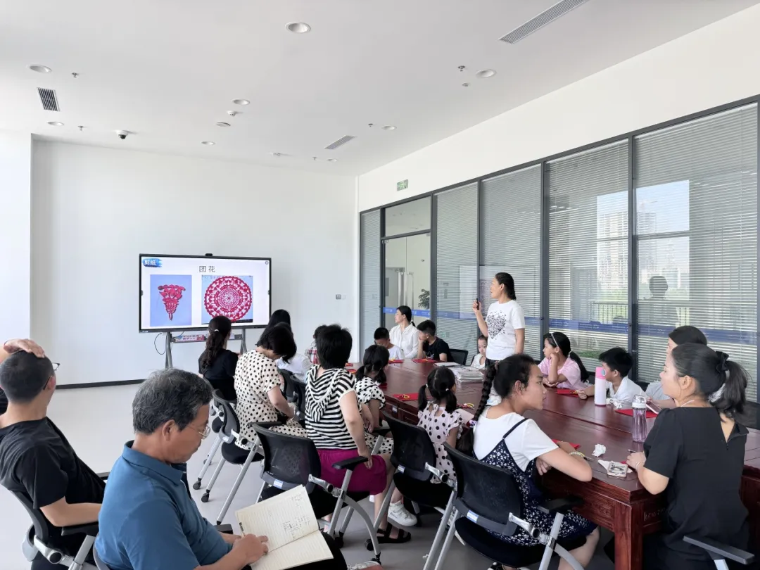 活动伊始,游老师以精心准备的《胶南剪纸》PPT为引,带领大家走进了这片红纸上的艺术世界。老师重点介绍了剪纸中极具代表性的“团花”艺术形式——它色彩鲜艳,图案繁复而吉祥,是人们对幸福、团圆、美好生活向往的生动表达,更是中国民间剪纸中最古老的形式之一。
