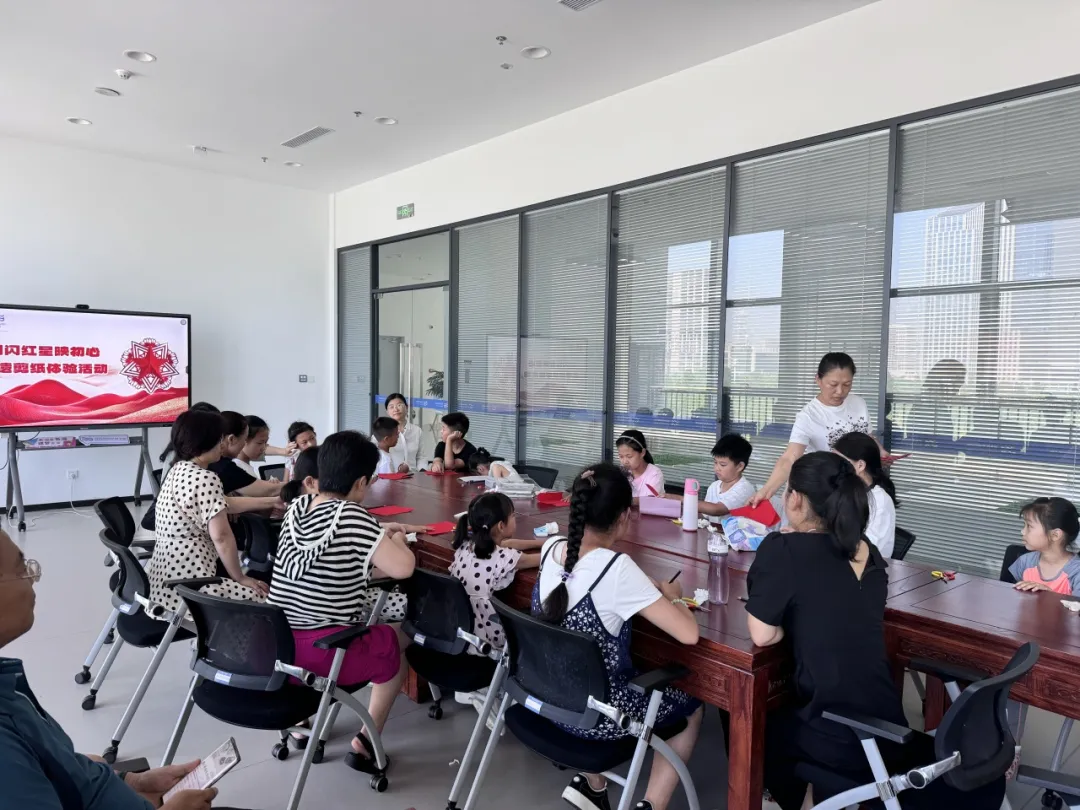 一把剪刀,一方红纸,千年的智慧在指尖流转,红色的星芒照亮文化传承的初心。7月6日,“闪闪红星映初心”非遗剪纸体验活动在图书馆的传统文化体验室成功举办,30多名大小读者围坐桌前,跟着非物质文化遗产传承人游录梅老师学折、学剪,指尖翻飞间,体验了中华传统技艺的精妙,亲手剪出了承载红色精神的五角星窗花。