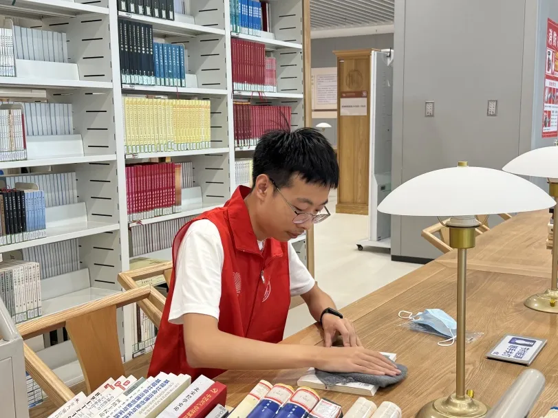 休息时,不少志愿者还会主动巡查书架,把被翻阅后放错位置的书轻轻移回原位,让每一排书架都保持着整齐有序的模样,为读者节省查找时间。