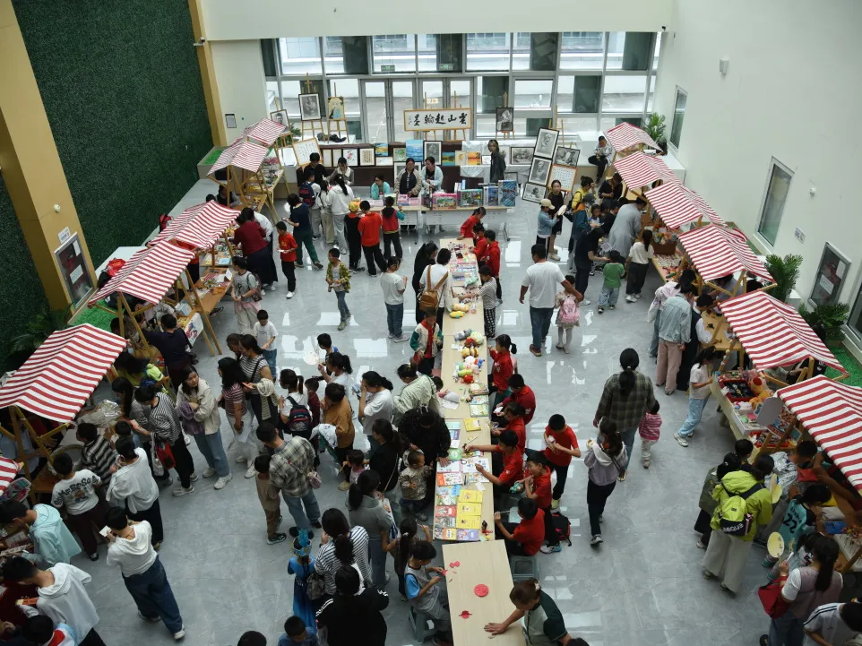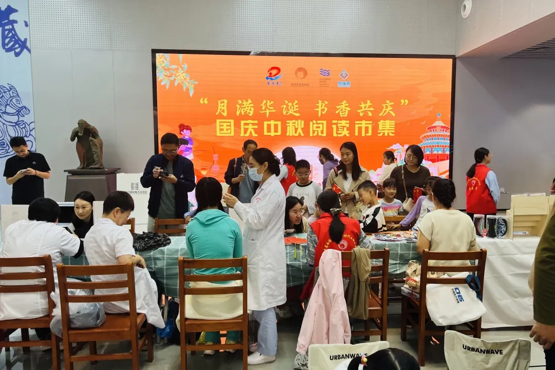 七墩山路馆联合悦城荟、美术馆举办“月满华诞 书香共庆”户外阅读市集,以“阅读 +”为核心,结合图书漂流、儿童跳蚤市集、投壶飞花令等非遗体验,搭配中医咨询等惠民服务,吸引上千名读者沉浸体验,成功打造“可逛、可玩、可学”场景,以创新激活文化活力。