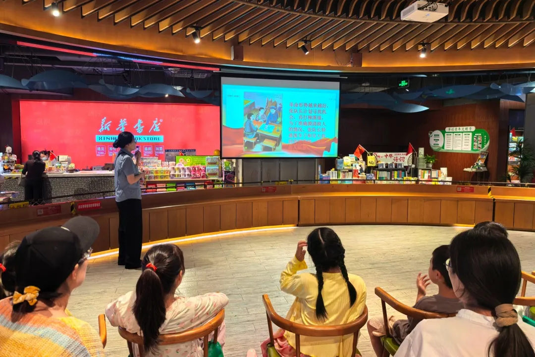 珠江路馆联合黄岛新华书店传媒书城,举办红色与中秋主题绘本故事会,在绘本中厚植爱国情怀。