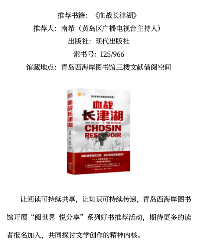 青西荐书|《血战长津湖》——“阅世界 悦分享”系列好书推荐(五十一)