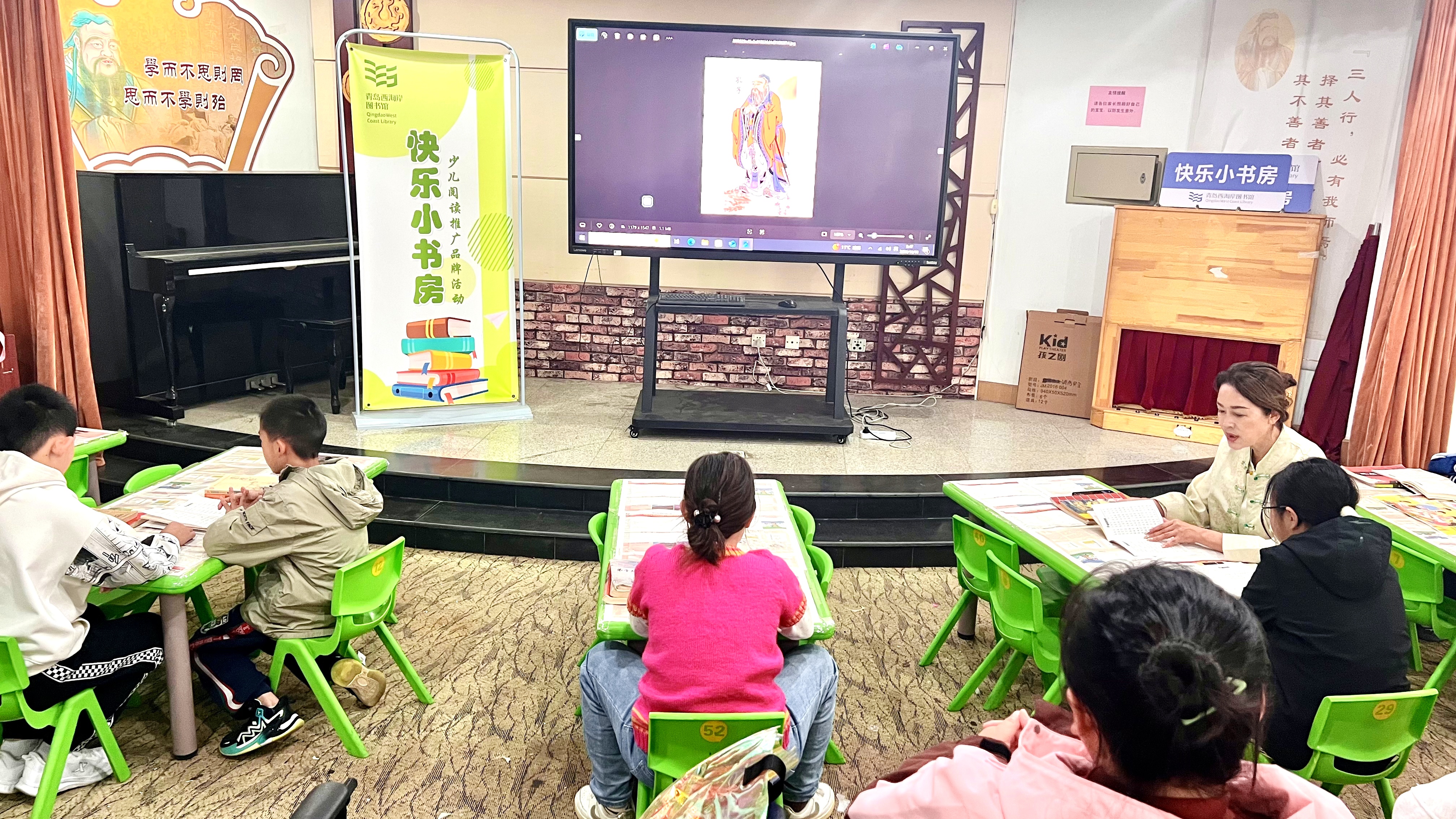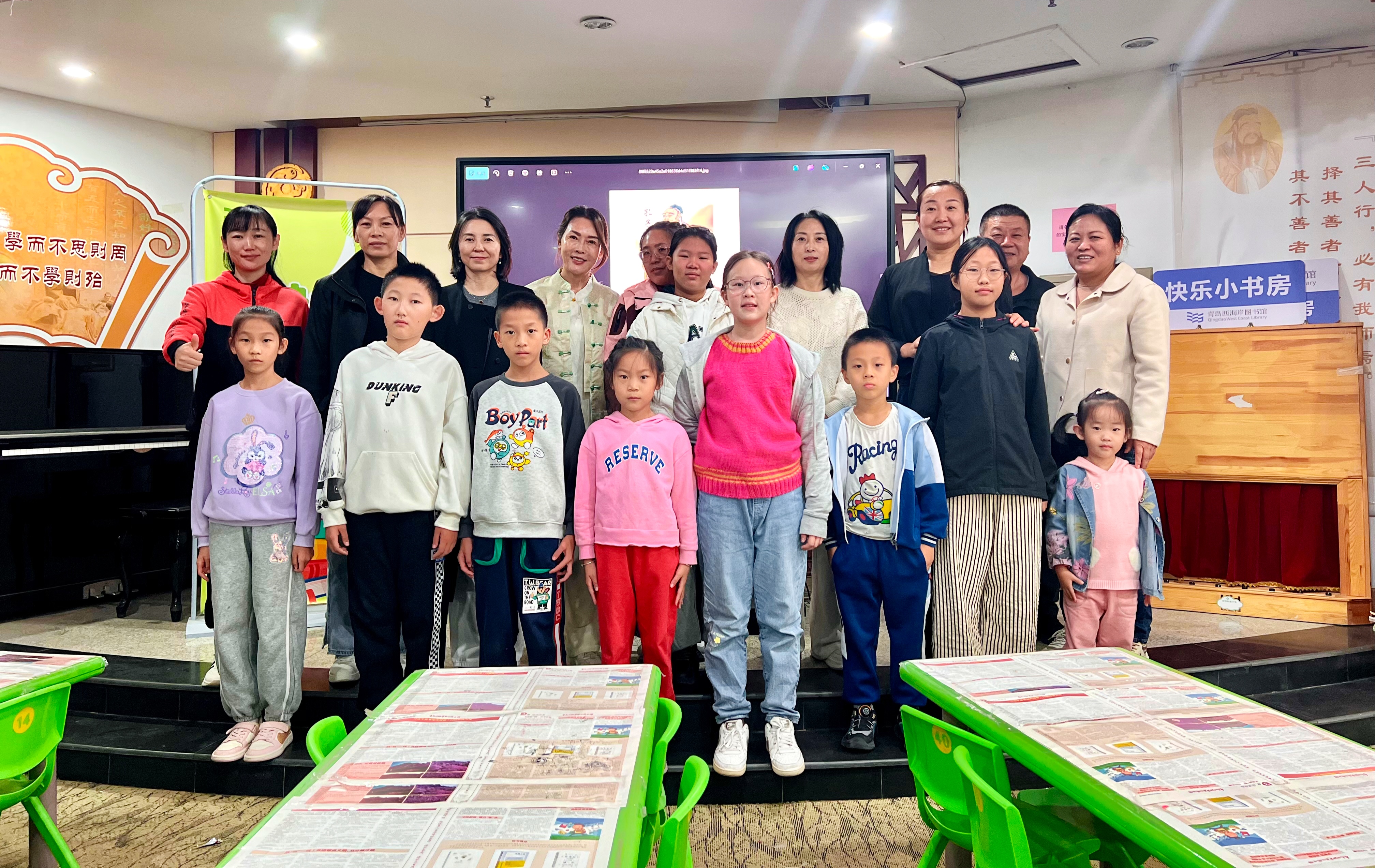 10月18日,青岛西海岸图书馆珠江路馆举办了“快乐小书房”国学讲堂。本期的“快乐小书房”国学讲堂课,青岛西海岸新区政博书院的志愿者一文老师和小朋友一起学习传统文化《论语》。小朋友和家长在一文老师的带领下一起诵读《论语》,感悟国学经典,共同快乐成长。