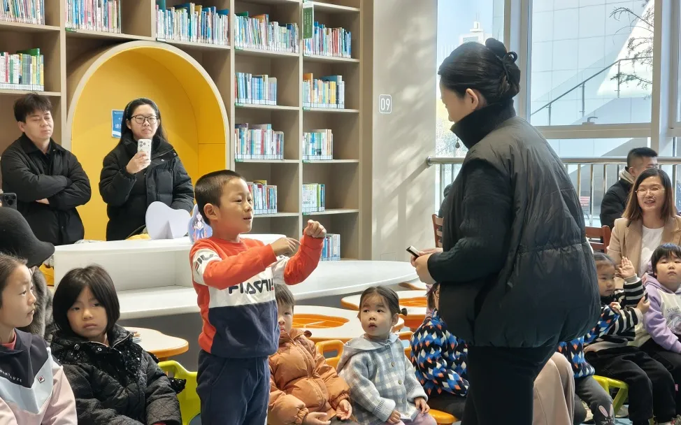 绘本故事结束后,考验才刚刚开始,飞飞老师邀请小读者上台,担任“小小故事王”,用自己的语言复述《神奇糖果店》的内容。小读者们用稚嫩却清晰的语言,将故事的起承转合娓娓道来,这个环节不仅加深了他们对故事的理解和记忆,更锻炼了他们的语言表达能力和当众演讲的勇气。