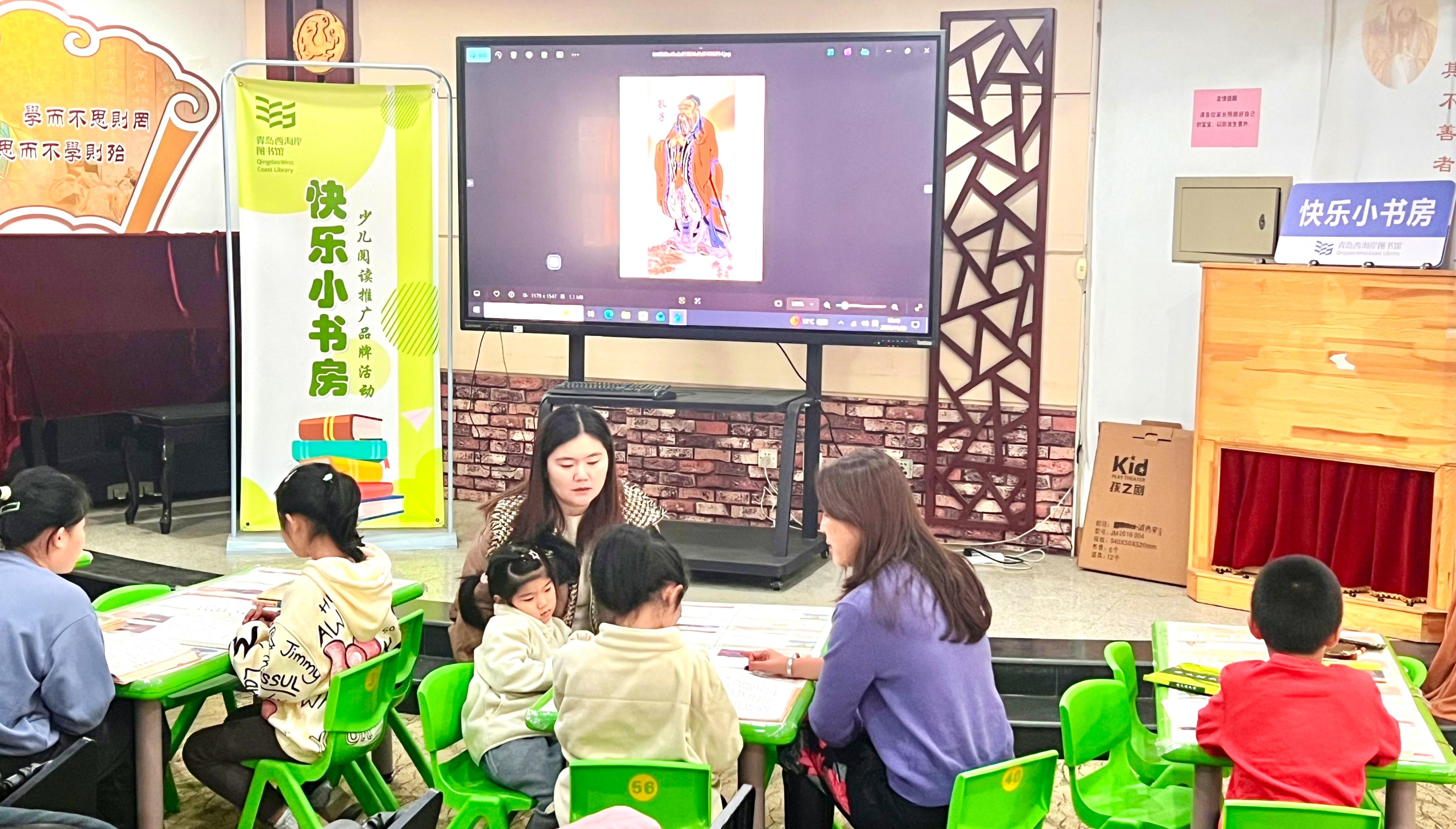 11月29日,青岛西海岸图书馆珠江路馆举办了“快乐小书房”国学讲堂。本期的“快乐小书房”国学讲堂课,青岛西海岸新区政博书院的志愿者一文老师和小朋友一起学习传统文化《论语》。小朋友和家长在一文老师的带领下一起诵读《论语》,感悟国学经典,共同快乐成长。