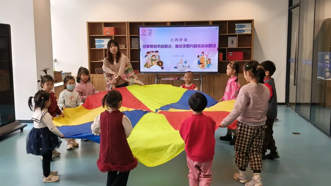 12月27日,青岛西海岸图书馆成功开展新一期“小西伴读”绘本主题活动——“故事里的声音魔法:奥尔夫即兴音乐绘本剧场”。
