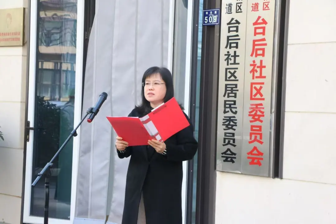 珠海街道台后社区党委书记周美妮介绍了“艺海明珠” 分馆的建设、风貌与功能布局。她表示,开馆对社区是荣誉更是责任,社区将做好运营管理,让书房成为连接邻里、服务居民的平台。