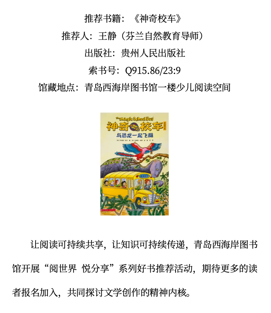 青西荐书|《神奇校车》——“阅世界 悦分享”系列好书推荐(七十五)