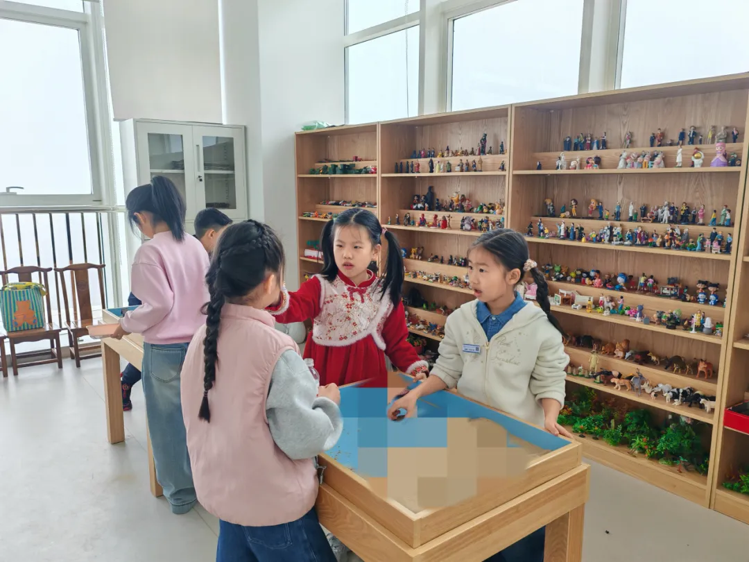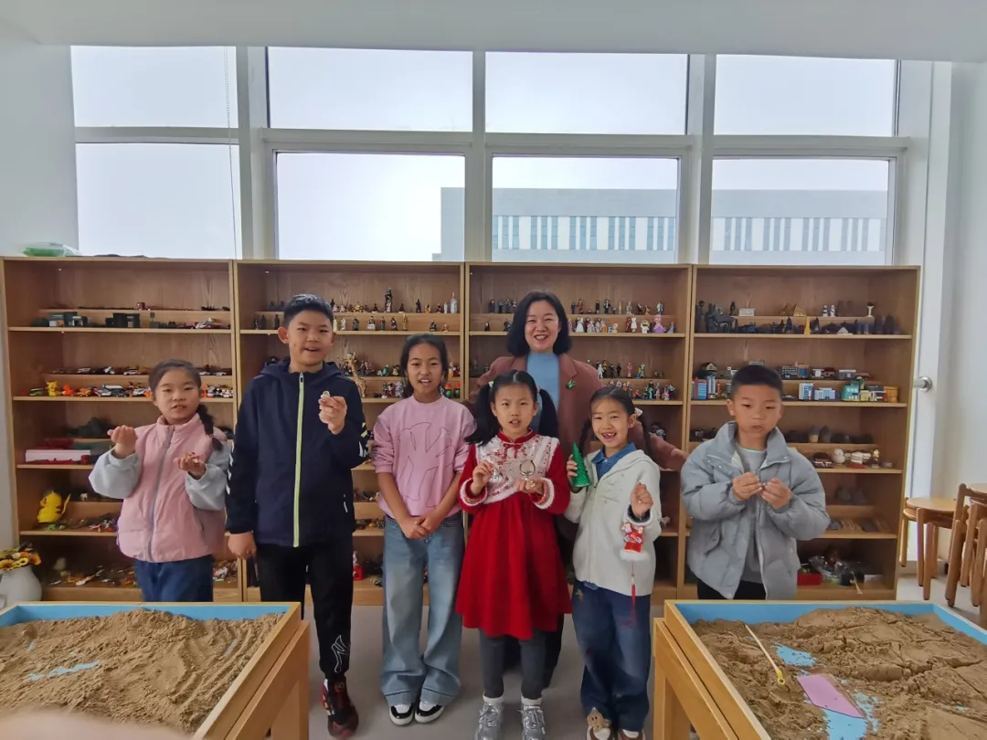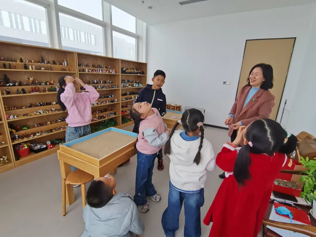自由创作结束,孩子们围坐沙盘前分享自己的故事。面对他们稚嫩又真诚的分享,熠柔老师认真倾听、耐心回应,不时给予肯定和鼓励,引导孩子们学会倾听同伴的想法。在分享中,孩子们不仅锻炼了语言表达能力,更学会了理解与包容,也在彼此的故事中,收获了新的灵感与快乐。