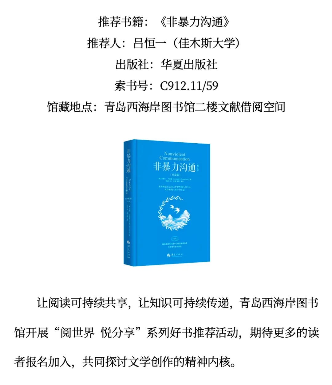 青西荐书|《非暴力沟通》——“阅世界 悦分享”系列好书推荐(七十六)
