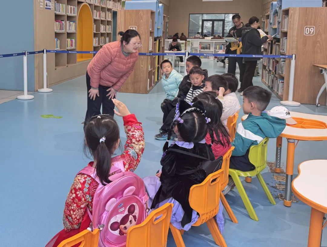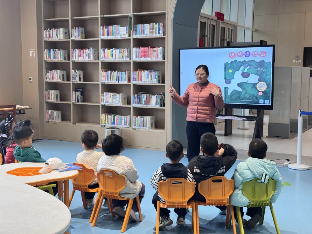 紧接着,《嗯嗯嗯嗯嗯》的故事让现场氛围愈发热烈。张老师用活泼的语调、夸张的动作,带领小读者们感受语言的节奏与韵律,在欢笑中解锁生活里的小问号。小读者们踊跃举手、大胆表达,稚嫩的童声里满是对世界的好奇,思维在故事里自由跳跃,整个阅读空间都被童真与欢乐填满。