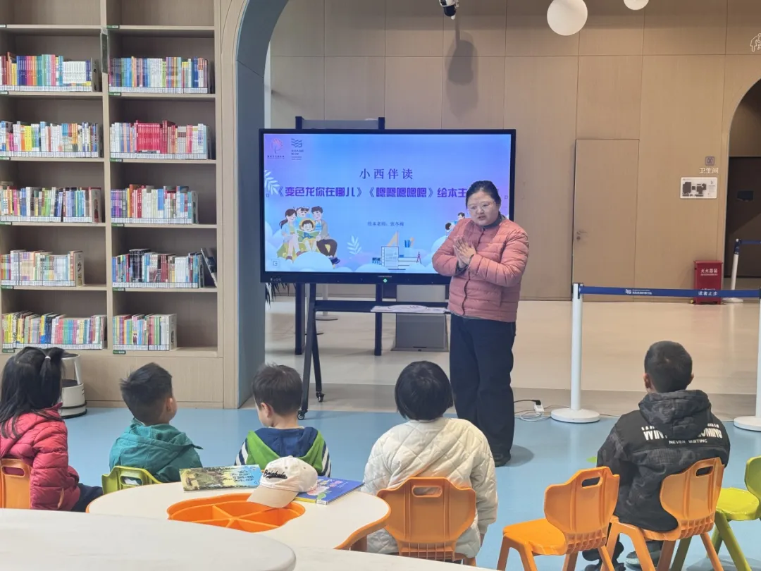 书香润童心,阅趣伴成长。3月28日,青岛西海岸图书馆“小西伴读”绘本活动如期而至,张冬梅老师带领小读者们走进《变色龙你在哪儿》与《嗯嗯嗯嗯嗯》的奇妙世界,探寻色彩与语言的趣味奥秘,感受绘本与春日交融的独特魅力。本次活动融合绘本共读、趣味互动、知识拓展等丰富形式,让孩子们在沉浸式体验阅读的快乐,收获成长与惊喜。