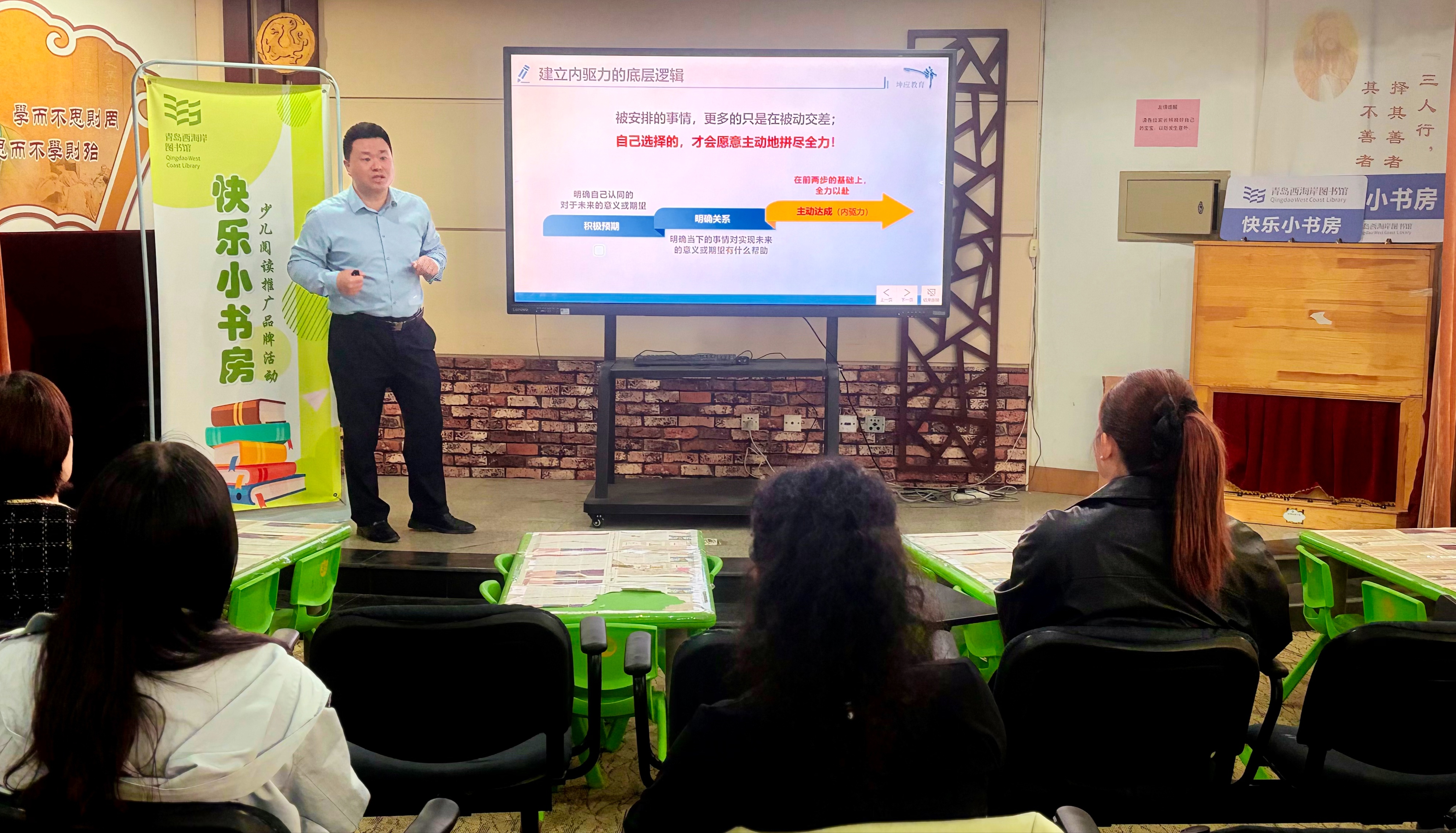 “4•23”世界读书日和全民阅读活动周期间,青岛西海岸图书馆珠江路馆举办了《建立学习内驱力的底层逻辑——学习内驱力提升系列讲座》。本次活动邀请心理咨询师宋凤泉主讲,从教育底层逻辑出发,深度剖析青春期孩子成长与学习的核心议题,为到场家长带来兼具专业性与实用性的家庭教育解决方案。