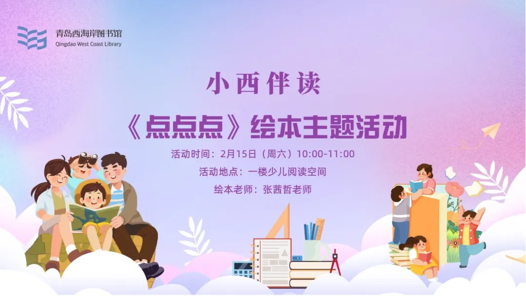 2月15日(本周六),将由高级家庭教育指导师张茜哲老师主讲绘本《点点点》,带领小读者们认识色彩、进行数字启蒙、培养专注力与想象力。