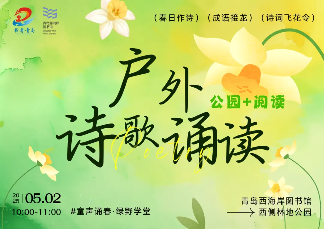 活动内容:图书馆计划开展“童声诵春·绿野学堂”户外诗歌诵读活动,通过趣味语言训练、诗词互动游戏和即兴诗歌创编,引导小读者在自然情境中感受诵读魅力,培养表达力与创造力,实现阅读与自然的诗意碰撞。